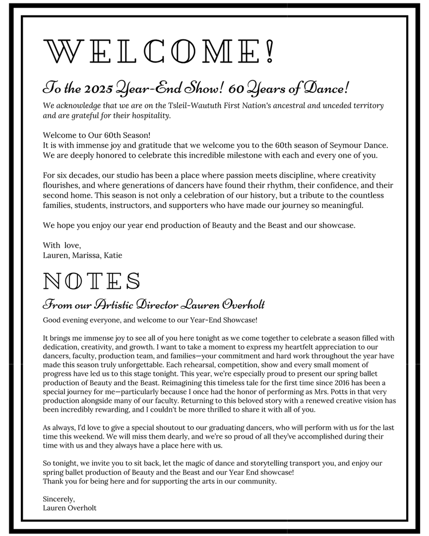 As always, this show is in loving memory of our Late Artistic Director, Sonia Ellis